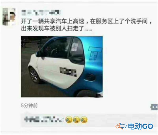 最近,共享汽车突然火了,不少品牌都开始摩拳擦掌,进军共享领域。就在这两天,一位用户开着共享汽车上了高速,服务区上趟厕所的功夫,出来它就被别人扫码开走了……共享汽车又在朋友圈火了一把。