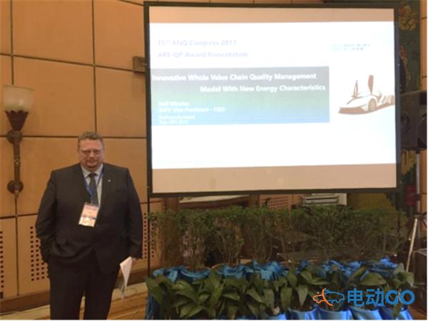 北汽新能源副总经理兼首席质量官Ralf Nicolas在现场接受颁奖