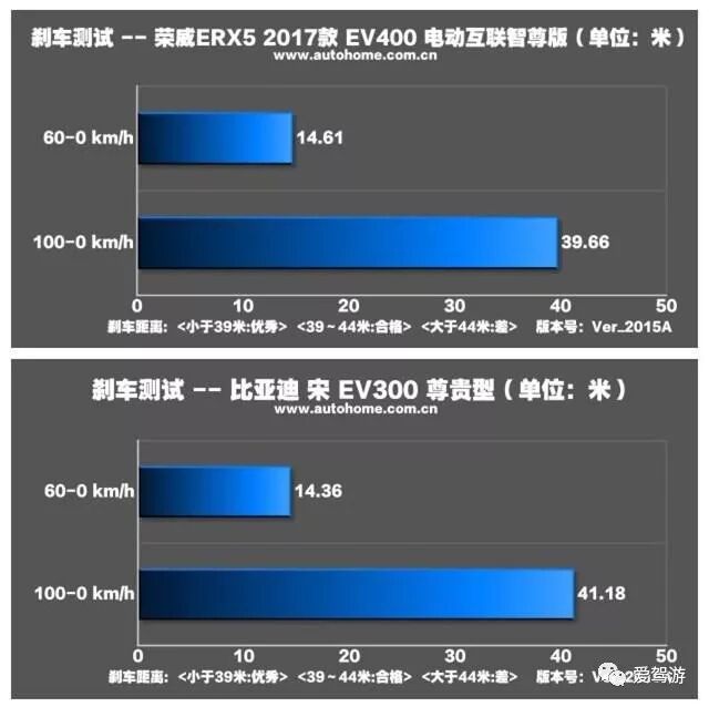 刹车距离方面我们可以清楚的看出,比亚迪的车由于车辆自重较大,所以制动距离较大。比亚迪宋EV300的制动距离为41.18米,而荣威ERX5这款车的制动距离达到了39.66米。这已经成为优秀级别。而比亚迪由于脱胎于燃油车标准,所以说在车辆的轻量化和电动汽车标准化设计方面稍显不足。