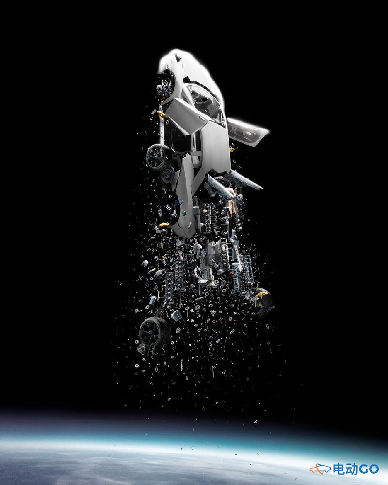 刻画了车辆在几秒内从地球升至太空的五个不同瞬间。车的部件、发动机、变速箱、悬挂和数百个