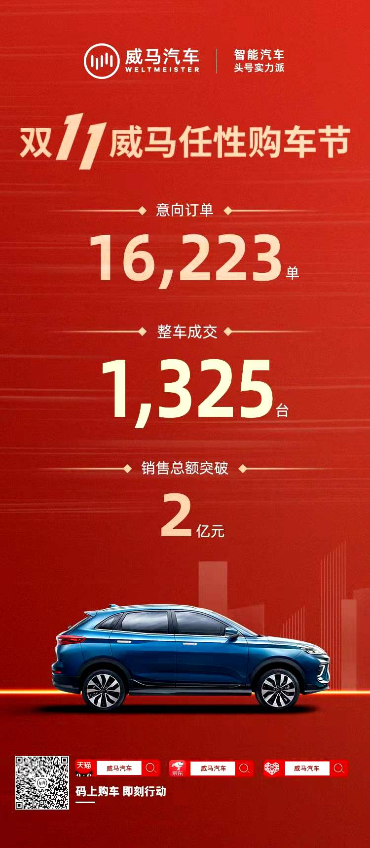 3秒“光速”成交!威马成唯一登上天猫双11热卖榜智能汽车品牌