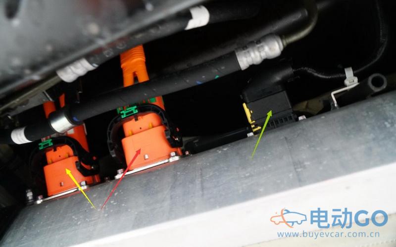 黄色箭头:连接动力电池高压线缆正极