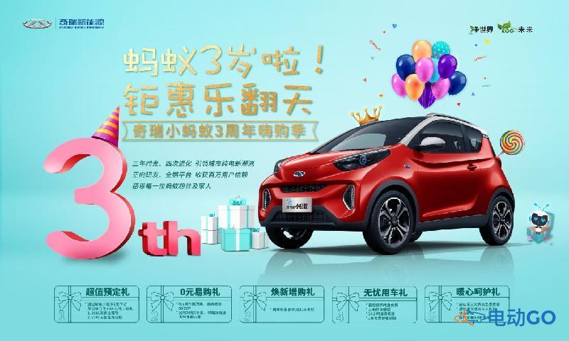 进入3月份以来,国内疫情得到进一步的有效控制,全国各地也逐渐开始复工复产。但疫情期间,乘坐公共交通上下班存在不小的传播风险,私家车则大大降低了这一危险系数,为此,不少人产生了购车的计划。作为奇瑞新能源旗下的明星车型,奇瑞新能源小蚂蚁自2017年初代诞生就备受广大年轻用户追捧,并稳居A000级细分市场销售冠军。值得一提的是,今年3月份还是奇瑞新能源小蚂蚁迎来上市三周年的日子,为此,奇瑞新能源小蚂蚁准备了多重好礼和优惠购车政策,这对于消费者来讲,可谓是不可错过的购车好时机。