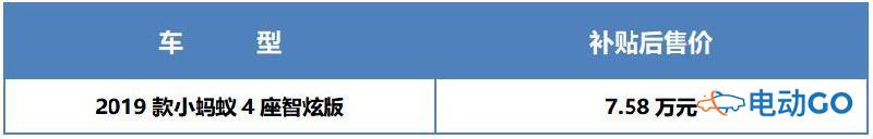 2019款小蚂蚁的改款升级,在产品力上有着不小的提升,也延续了奇瑞新能源小蚂蚁一贯的高品质和高配置。相比2019款小蚂蚁2座智尚版、4座智享版, 2019款小蚂蚁智炫版显然在内外配置、智能、安全和舒适性上都更胜一筹。4座智炫版在价格上比4座智享版贵出了6000元,但在配置上却比4座智享版多出了全景天幕、前排手机无线充电、GPS导航系统、导航路况信息、语音识别控制系统等舒适性配置。要知道,这些配置可远远超出了6000元的价格,所以从性价比和用车体验等方面综合考虑, 2019款小蚂蚁智炫版更值得消费者购买。