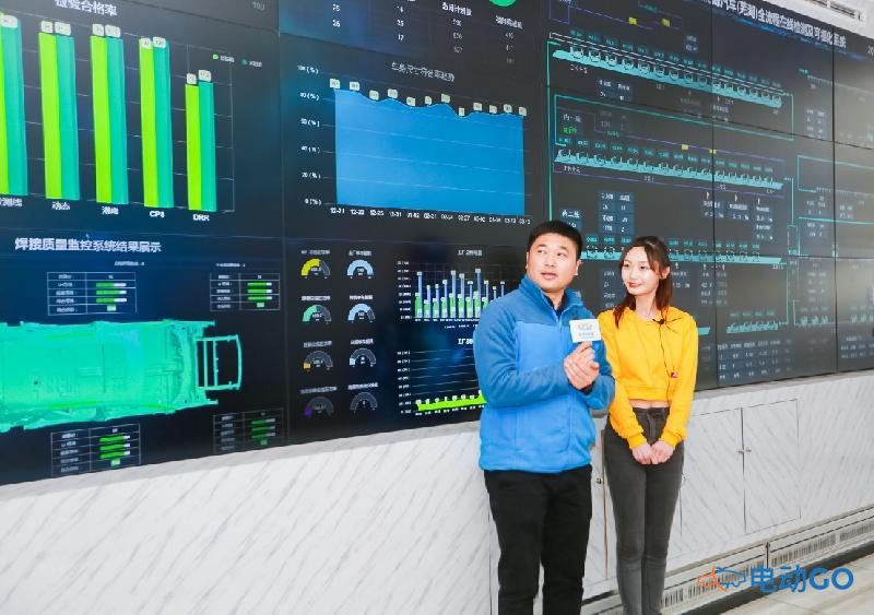 监控室内,云监控平台可实现全流程在线监测、数据追溯、故障预知,是行业内最先进的云监测系统,涵盖了质量追溯、设备管理、能源管理等主要方面。云监控平台的系统构架分感知层、协同层、交互层三个层面,将现场12300个传感器的信号传送给云监控平台,实时进行车辆制造过程中全流程监测。