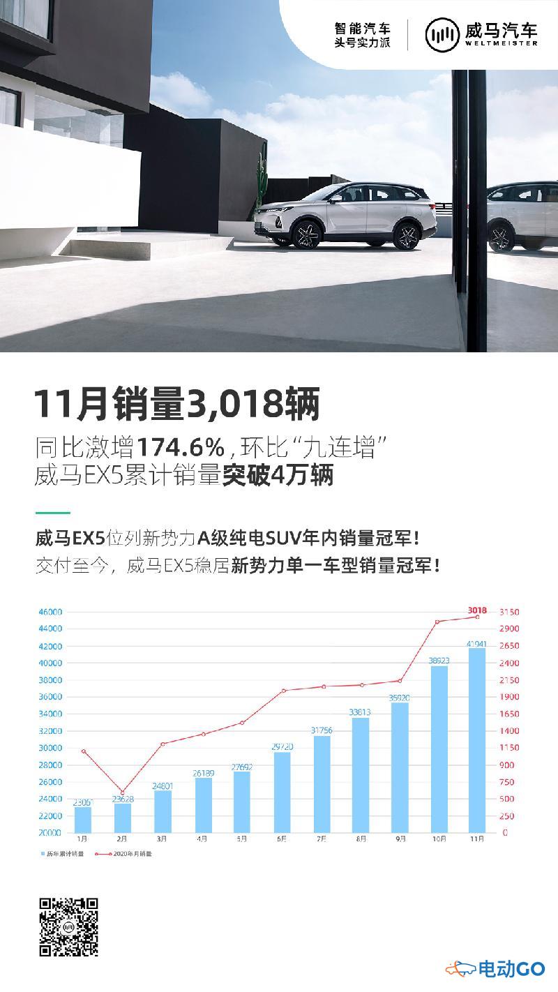 威马汽车11月销量 3,018辆,同比激增174.6%,环比“九连增”