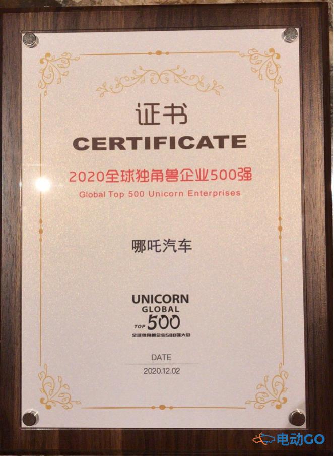 刚刚在C轮融资中获得华鼎资本20亿元领投的哪吒汽车,又传来好消息:入选2020全球独角兽企业500强。