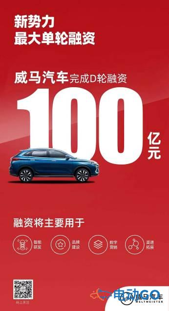 在融资方面,威马汽车也有不俗的表现。今年9月22日,威马宣布已完成总额100亿元人民币D轮融资。作为造车新势力单轮最大融资,资金将用于智能技术研发、品牌建设、数字营销和渠道拓展。