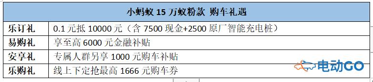自2017年上市以来,小蚂蚁一直是小型纯电领域的明星车型,仅用三年多时间其产销量就突破了15万辆大关,产品实力有目共睹,同时也获得广大消费者的一致认可。而能够取得如此成绩,必然离不开小蚂蚁亲民的售价及其超越同级的产品特性。通过上文的解读能够看到,小蚂蚁15万蚁粉款在购车、用车、养车等多方面都能具备经济、实用的产品优势,为用户提供省钱、省时、省心的用车体验,不愧为万千蚁粉出行的首选伴侣。
