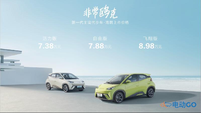 4月26日,“新一代主流代步车”比亚迪海鸥正式上市,此次共推出3款配置车型,官方指导价格区间为7.38-8.98万元。该车是比亚迪新一代技术向广域市场的全新车型,拥有305km和405km两种续航里程(CLTC综合工况),主打小型纯电动车的细分市场。